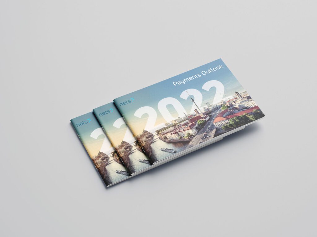 Eksekvering af eksisterende visuel identitet i opsætning af “Payments Outlook 2022” rapport.